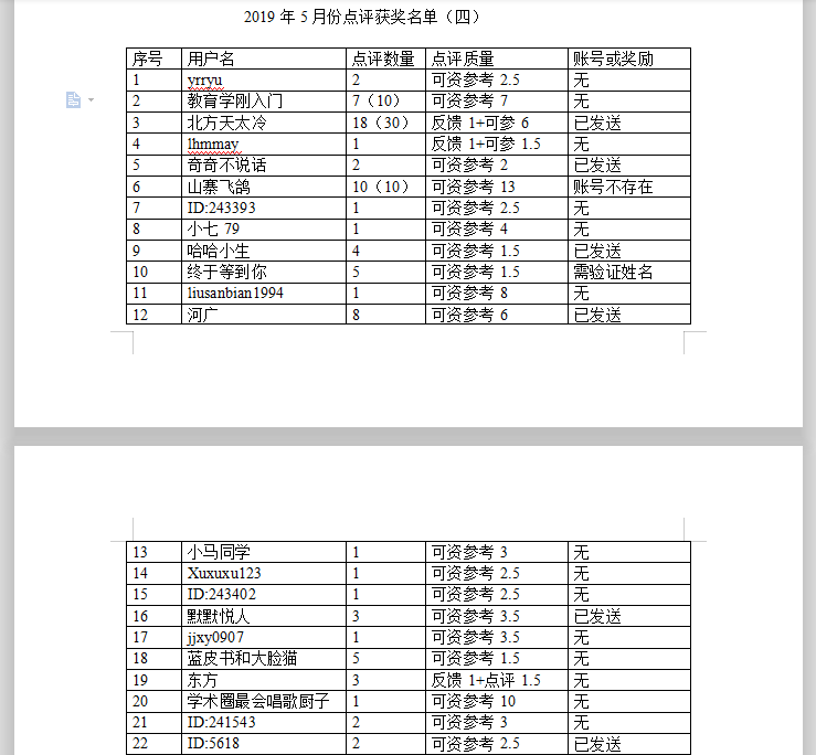 下面是2019年5月份的点评和纠错获奖名单!