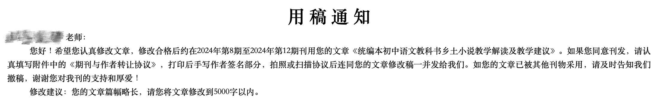 我的点评:暑假前投稿,八月末收到编辑部电话,说我写得不错,修改之后再返回投稿邮箱,然后就告知我希望我订阅十套期刊,以支持编辑部的工作。让我感到疑惑的是,如果我修改之后,再返回去,这个流程不就是投稿初审吗?后来我找到投过此期刊并得到录用的学友进行交流,发现编辑部在给他打电话时,还给了论文编号,让他返回邮箱的时候加上论文编号(他没有订阅期刊)。根据此前学友们的评论,我推测,这个刊物只要给了论文编号,修改返回以后就会得到录用,而没给编号还打电话让修改文章的,就是想让这些投稿者订阅期刊。