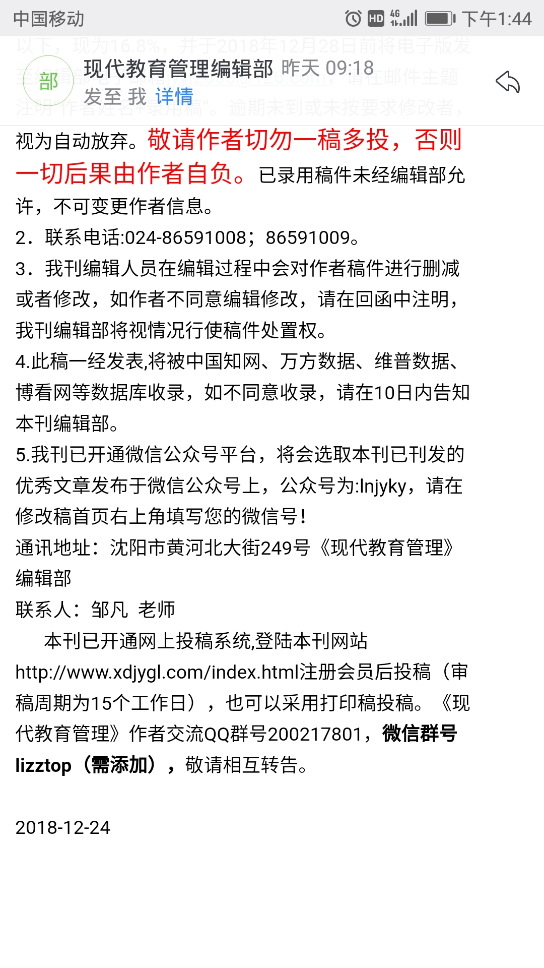 我的点评:审稿依然是飞速,一周多一点的时间,今年录的第二篇,上一篇今年3月投稿,期刊非常人性也非常给投稿者机会,绝对的良心期刊。