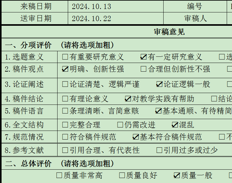 我的点评:2024年10月10日投稿, 2024年10月28日邮件修回,有详细修改意见,提的很中肯,要求一周内修回,感恩。 已经大修回复,期待好结果,Mark一下。 提示:投稿时请提供中国知网个人查重检测报告(检测时间为7天内)。 这里是中国现代教育装备杂志社邮件自动回复,您的稿件已收到。投稿审核时间为1个月,届时是否刊用均会给您发邮件回复。 投稿发表排队时间:稿件在通过初审后,如需加急可电话联系。 我们对来稿字数要求为4500字符以内,如稿中带有图片或是表格,则需要删减更多。如您已在稿件中注明以下信息则可略过,如您稿件信息不全,请按以下要求补全信息并重新发至我社邮箱,由此给您带来不便望谅解(以下信息不全的稿件本刊将延后审阅,信息齐全的稿件将优先审阅刊登)。 *作者单位(院、系)、*详细地址、*邮编、*电话、*邮箱、*作者的简介(学位、职称),*英文的(题目,作者姓名,单位、摘要及关键词)。注:填写以上信息,是为了方便在刊登过程中有问题及时与您取得联系,以及出刊后给您回寄样刊。*号项为必填项。