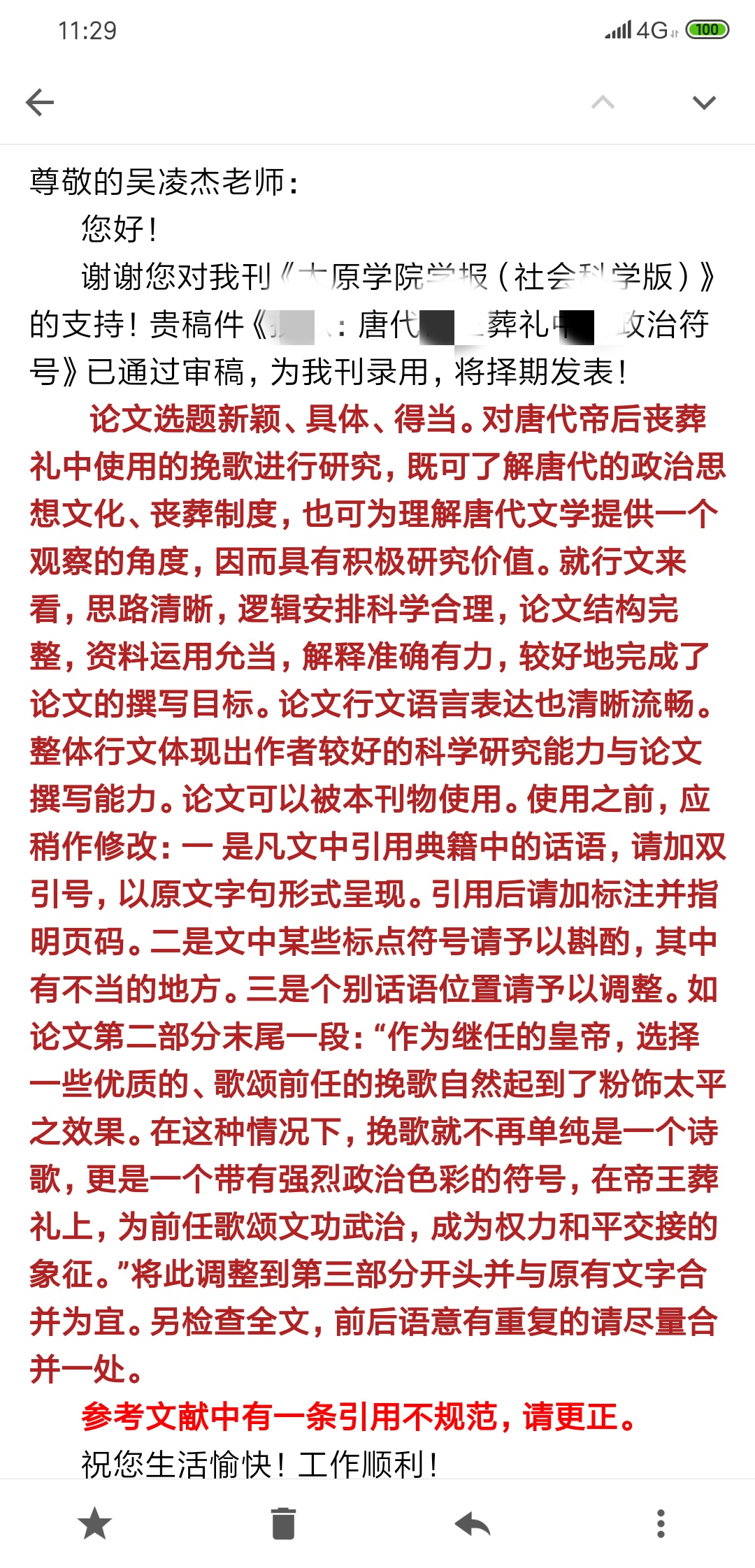 我的点评:一周后收到退稿邮件:尊敬的作者: 您好! 您的稿件《。。。》一文经我刊专家审核认为不能达到本刊的发表要求。 谢谢您对本刊的支持,欢迎再次投稿。 此致 《太原学院学报(版)》编辑部
