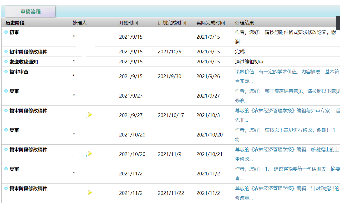 我的点评:一个月通知录用,再一个月上知网,真的是神速了。会要求国家级或教育部课题,初审和外审速度都很快。只送了一个外审,外审意见不错,就进入修改流程,基本上进入修改流程希望就非常大了。改到后期,编辑老师会电话沟通具体细节,告知录用并尽快安排刊发。是一次非常棒的投稿体验。