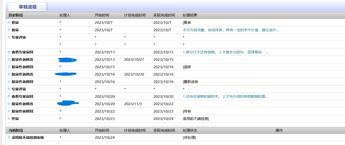 我的点评:有一点我不懂。这个刊物在初审阶段让我两度改格式,尽善尽美式样的改各种格式,并且还让我提供了注释的图板和版权页。提供完后,突然才复审。这个流程没啥问题吗?应该是确定录用才改格式提供注释图版啊!或者至少是录用后,再提供版权页和注释图版才合理。这把我整的改一大堆、话费巨大时长才进入复审,后面的路还有点长啊!