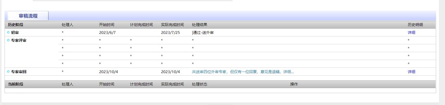 我的点评:发表过程见图,半年刊审稿周期确实难熬。但审稿老师十分尽责,退稿意见也很全面,是逐字逐句看了并点评的。但我对审稿意见并不是十分赞同,这属于学术争论的范畴了。没有在C集发表很可惜,不过也被另外一个学报录用也算有结果了。