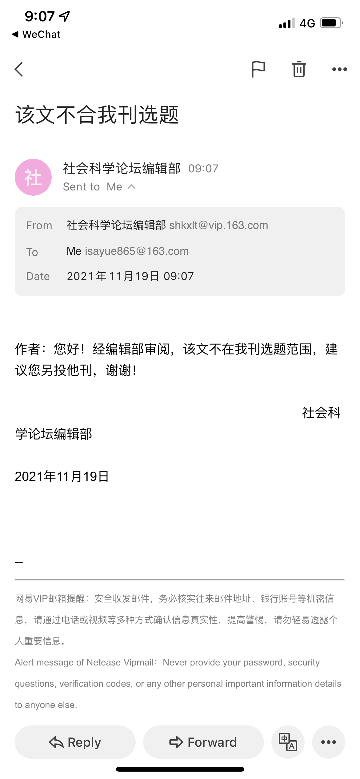 我的点评:也不知道这个刊偏爱什么主题,话说一个社科联主办期刊不关注基层治理问题吗,奇奇怪怪。昨天晚上9点投的,第二天上午9点拒稿