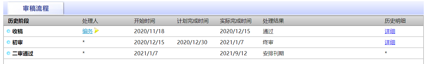 我的点评:收稿和初审还是很快的,但是终审相当漫长,没想到如此漫长,得亏最后的结果是好的。系统信息有滞后性,其实早在七月份责任编辑就联系过我两次,但是由于一些原因没联系上,最后在八月底直接电话我,向我提了修改意见,主要是删减字数和格式调整。编辑老师人都挺好的,中间打过去电话也都可以打通,老师也很细致耐心,甚至可以开玩笑,这一点大赞。投该期刊的同学要有十足的耐心啊,文章也要经得起检验,终审三四个月被拒的也不少见。希望大家都能多中多发。