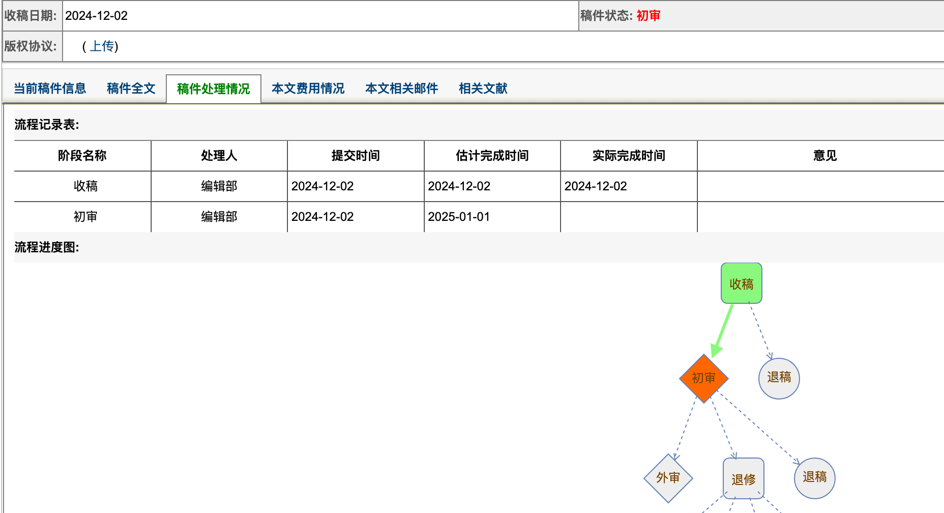 我的点评:6月1号投稿,当天直接进入初审,初审了接近1个半月,7月12号直接退稿,没有任何意见,就耽搁了这么长时间,效率太低。