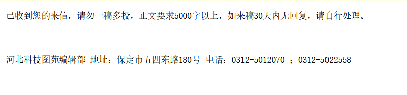 我的点评:5月7日晚投稿,研究的是国家图书馆某古籍,刚才给编辑打电话,编辑和我聊了不少,他说文章长而且太深奥,核查不易可能也不会被引用,所以经讨论没用。老师的话很诚恳,也说出问题所在了,点赞。该刊的编辑是河北大学图书馆的老师,编辑部就在校内。