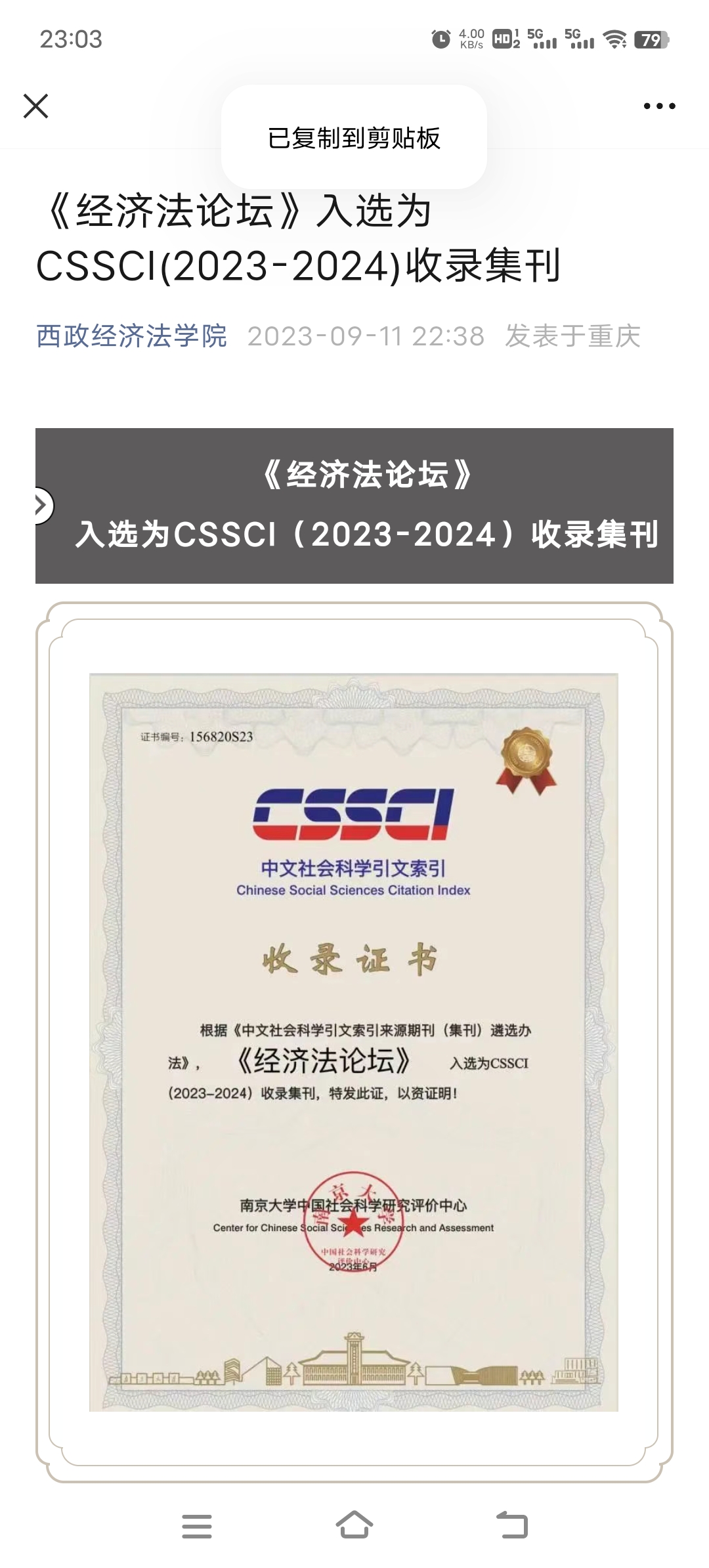 管理员回复:谢谢您!现已标注为CSSCI(2023-2024)收录集刊!