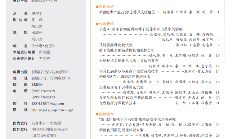 万维老师,请补充该刊微信号:新疆农垦科技。