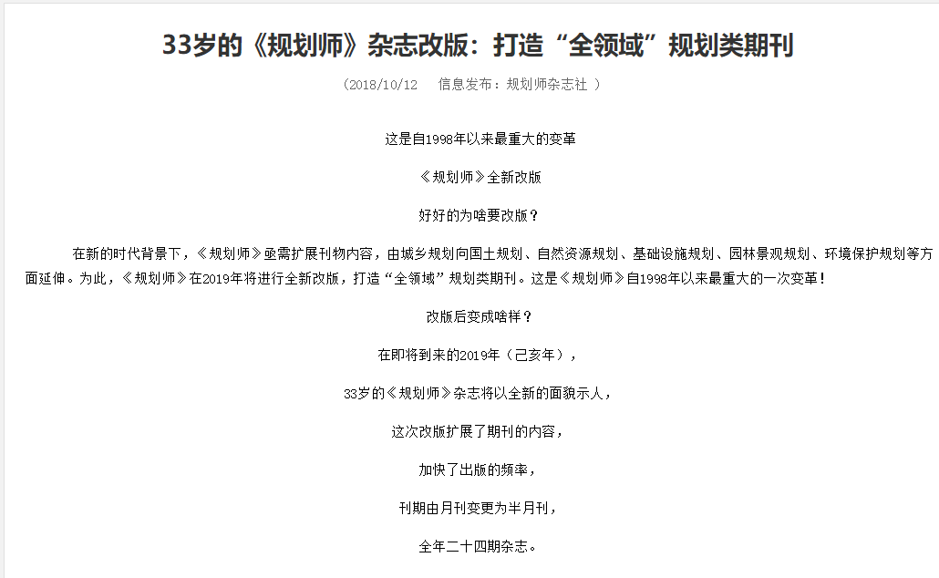 《规划师》杂志从2019年开始改为半月刊,请老师及时更正。具体可参考官网介绍:http://www.planners.com.cn/news_show.asp?news_one_id=2&news_two_id=3&news_id=2283