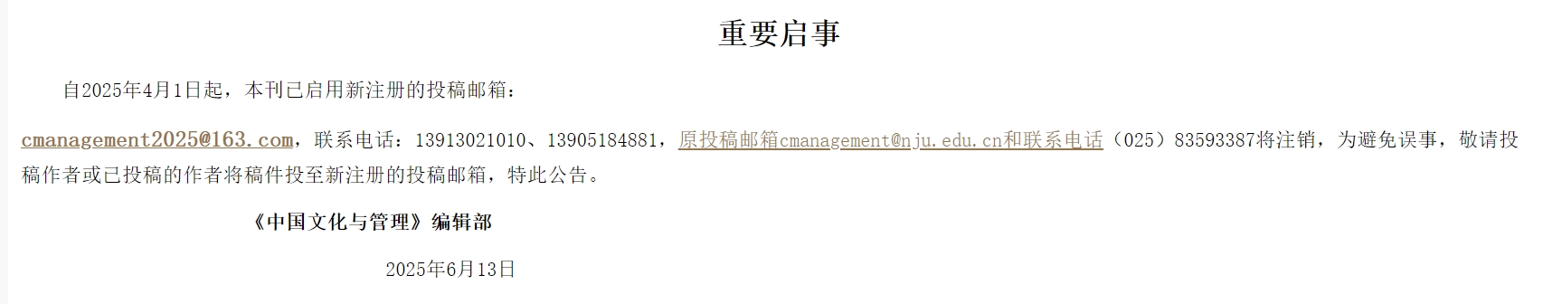 该刊已经更换邮箱cmanagement2025@163.com,请核查