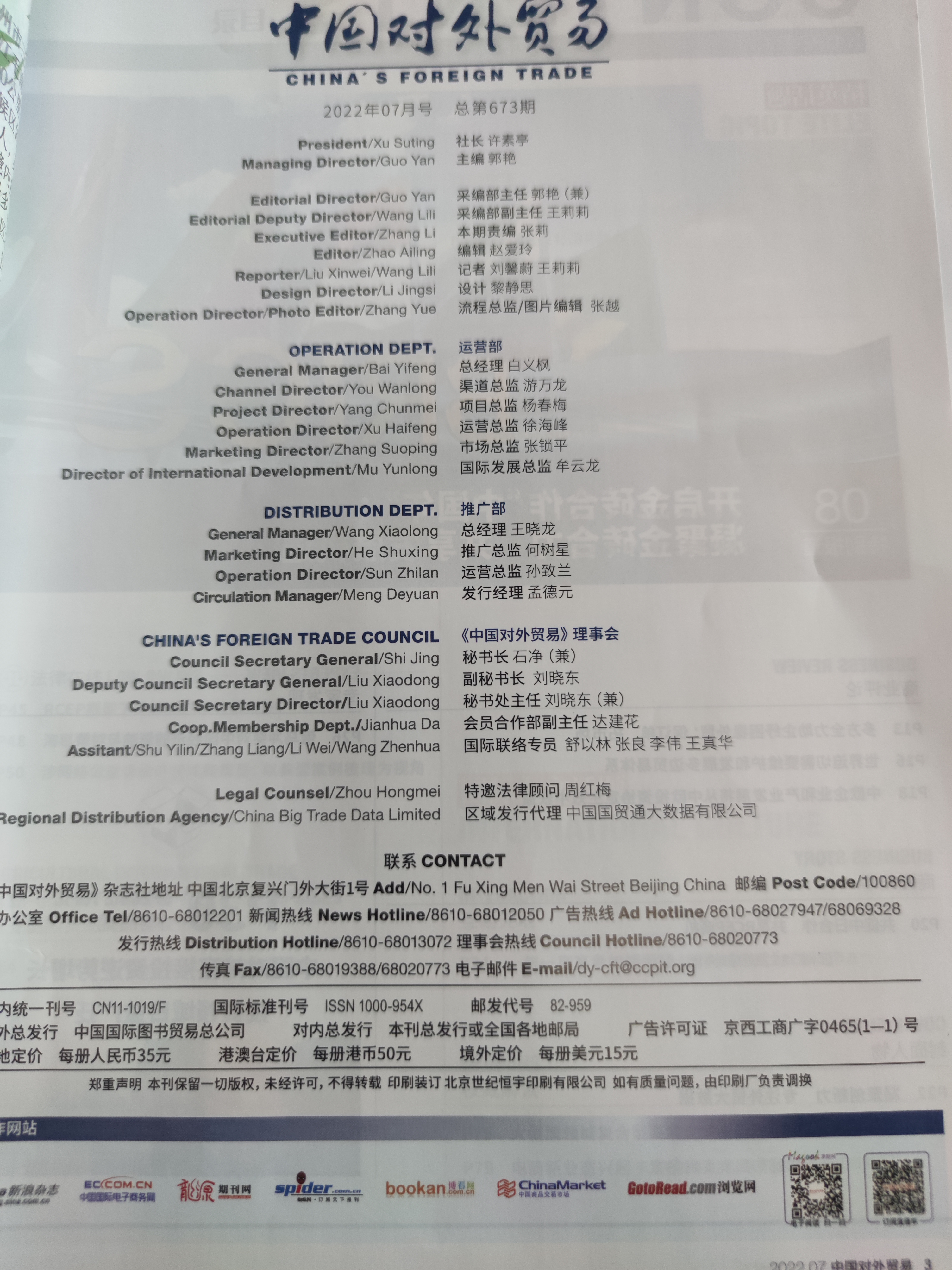 《中国对外贸易》编辑部同仁: