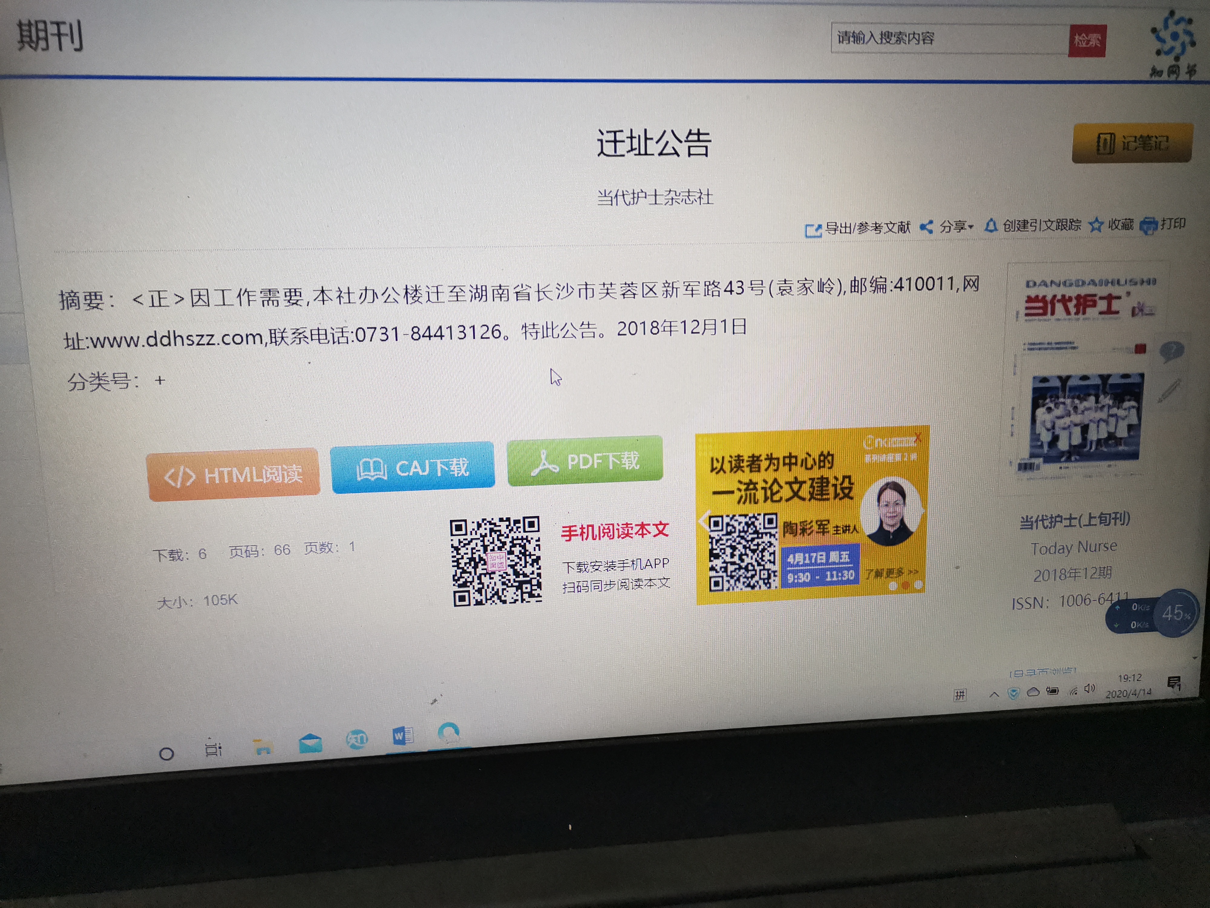 当代护士(上旬刊)该刊已迁新址,请进行修改谢谢