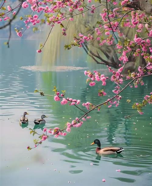 和风荡漾烟霞布,绿柳红桃不胜收。